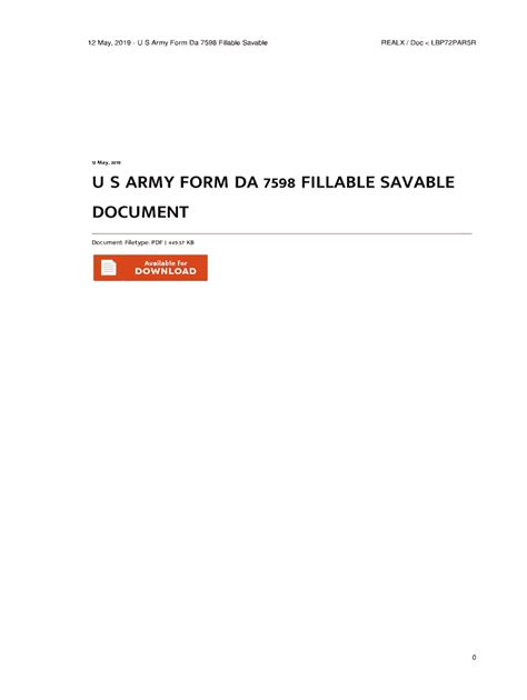 Download U S Army Form DA-7598 - PDF Fillable Savable Reader BookBoon